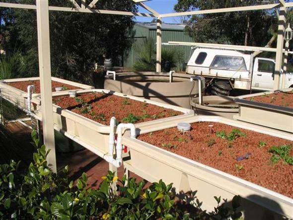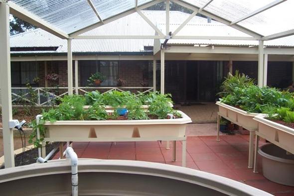 Fayes’ system consists of five beds and was the first BYAP system to the installed. The system was installed in June, 2007 and has been incredibly productive. Faye has managed to feed her family of five almost entirely from the produce harvested from her system. Faye opens her four acre garden regularly and the aquaponics system is a big hit, often recieving the most interest.
